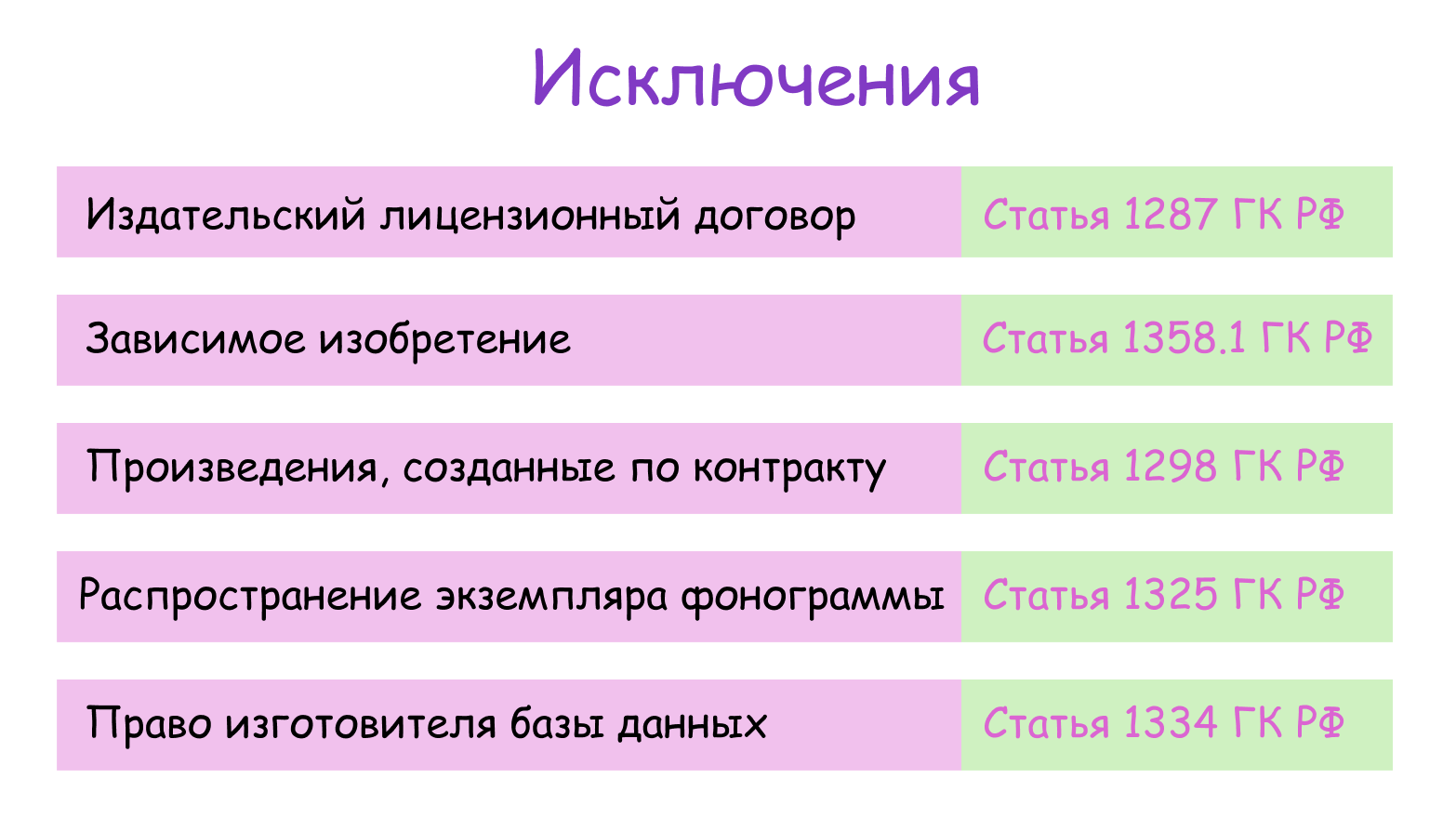 Условие третье. Принимаем во внимание исключения из общих правил.